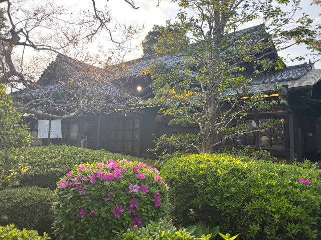 料亭みたいな見た目の、立派な日本家屋と庭園が広がっていて趣のある店構え。