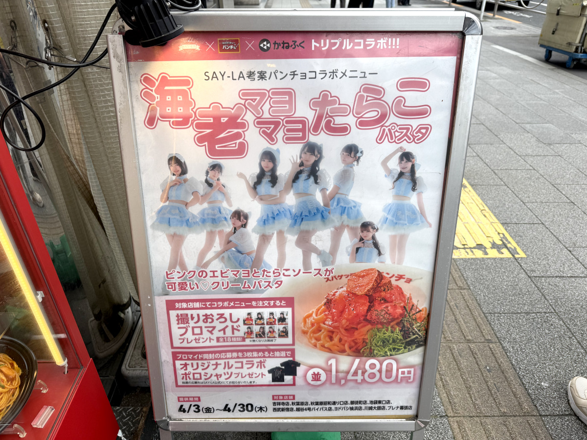発表によれば「SAY-LA」は、過去にミュージックビデオなどでパンチョとタッグを組んできた「3000年に一度の正統派アイドル」とのこと。そういえば新曲の「未練タラタラたらこパスタ」が店内でヘビロテされていた。