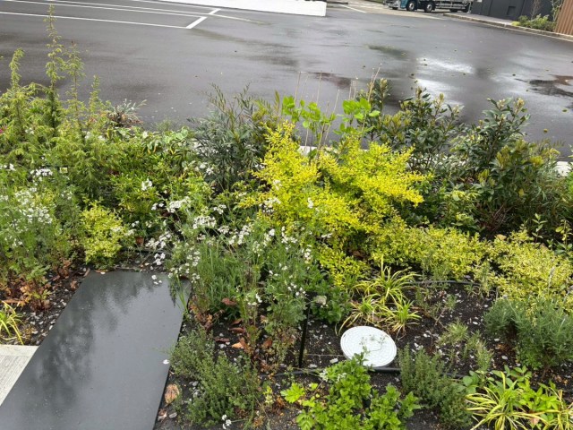 通路の脇には「ROKU〈六〉」に使われる植物が植えられており、通称 “ボタニカルロード” と呼ばれている。大島桜、柚子、ジュニパーベリーなど、原料と同品種の植物が並んでいるのが、なんかいい。