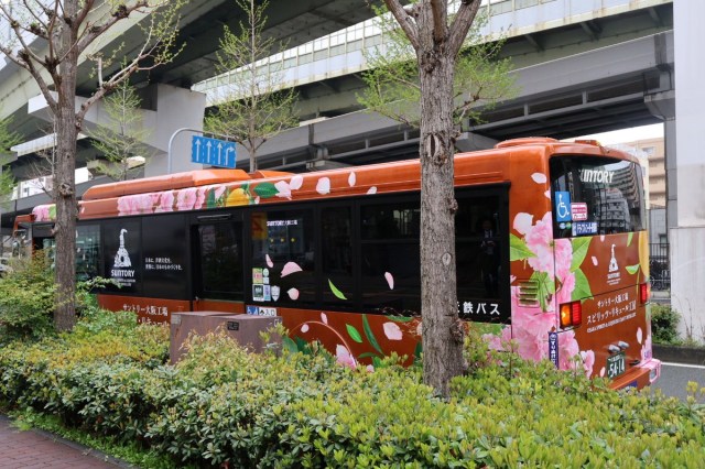 弁天町駅から無料のシャトルバスに乗車。工場見学者向けの特別デザインで、この時点でワクワクが止まらない。