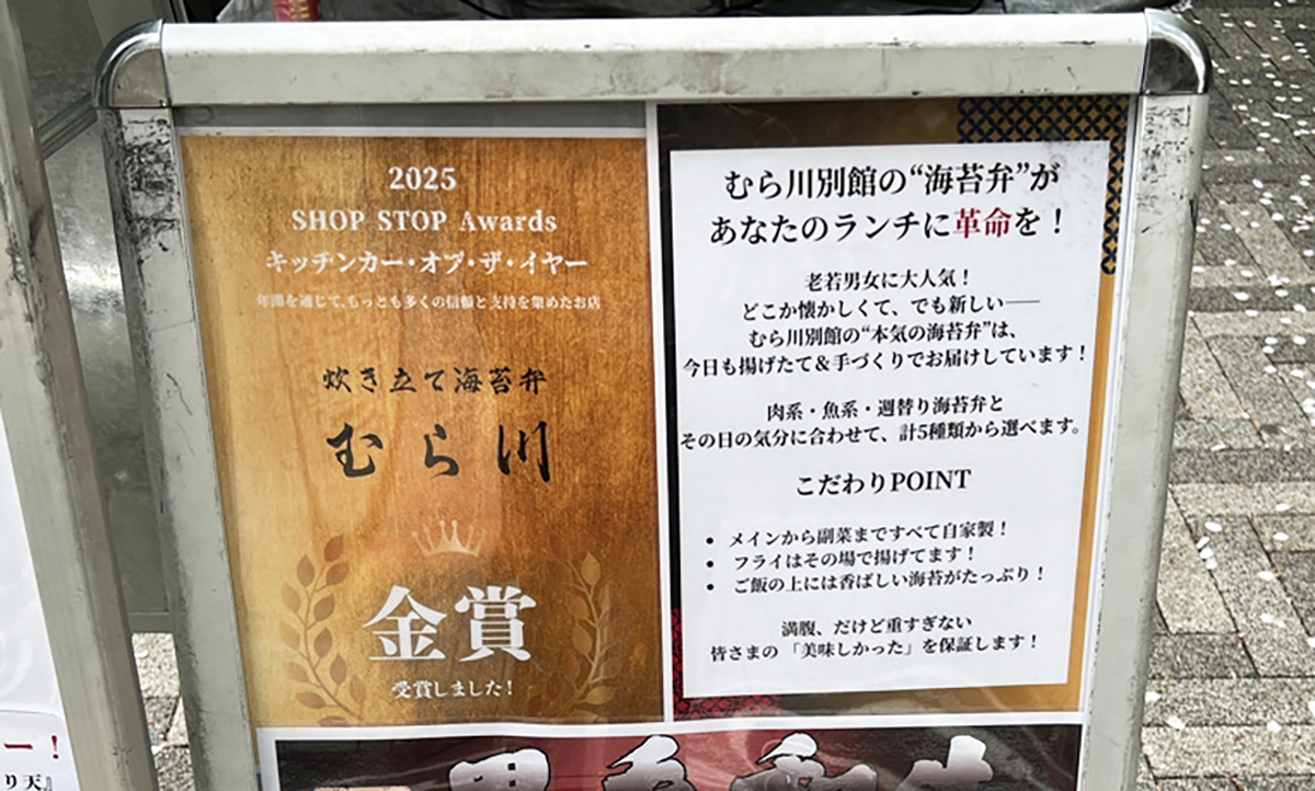 で、その総合の賞「キッチンカー・オブ・ザ・イヤー」の2025年の1位のところには確かに目の前のキッチンカーの名前が書いてあった。その名も『むら川』である。