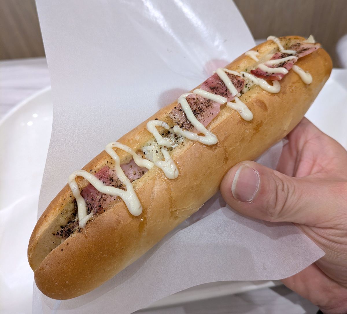 さっそくポテトドッグにかぶりつく。ふんわりとしたパンの中にホクホクのジャーマンポテトサラダ、トッピングのベーコンの塩気がよく合う。奇をてらった派手さはないが、食べるとどこかホッとする味。