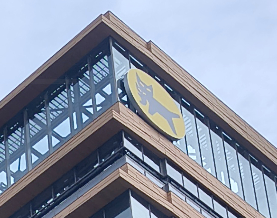 この大変立派な建物がヤマトの本社。社屋にはちゃんとクロネコマークがついているぞ。