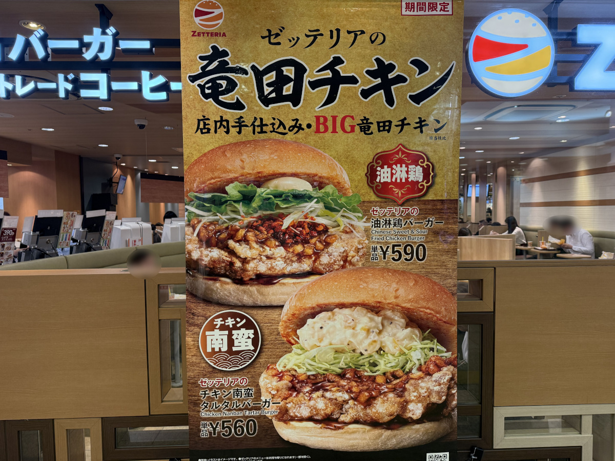 なお、ゼッテリアの竜田チキンバーガーは『チキン南蛮 タルタルバーガー(560円)』と『油淋鶏バーガー(590円)』が発売されており、私が食べたのはチキン南蛮の方。甘酢ダレの味付けも絶妙であった。