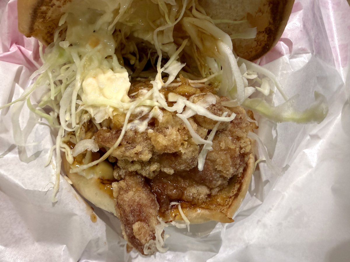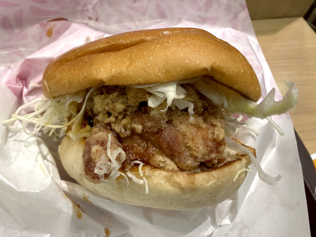 当時の記事には「そんじょそこらのチキンタツタでは勝ち目がない」と記述したがまさにその通り。衣のザクッと食感、ジューシーな鶏モモ肉、生姜の鮮烈な風味等、どこを取っても隙が無い激ウマバーガーである。