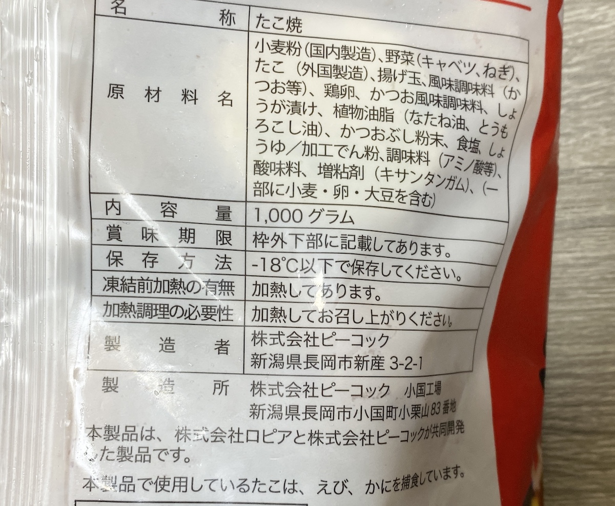 ちなみに同商品を製造しているのは、昭和46年創業の株式会社ピーコック(新潟県長岡市)。たこ焼き、焼きそば、お好み焼きなどを得意としている会社で、 実は埼玉発祥スーパー「ベルク」の冷凍たこ焼きも手がけている。
