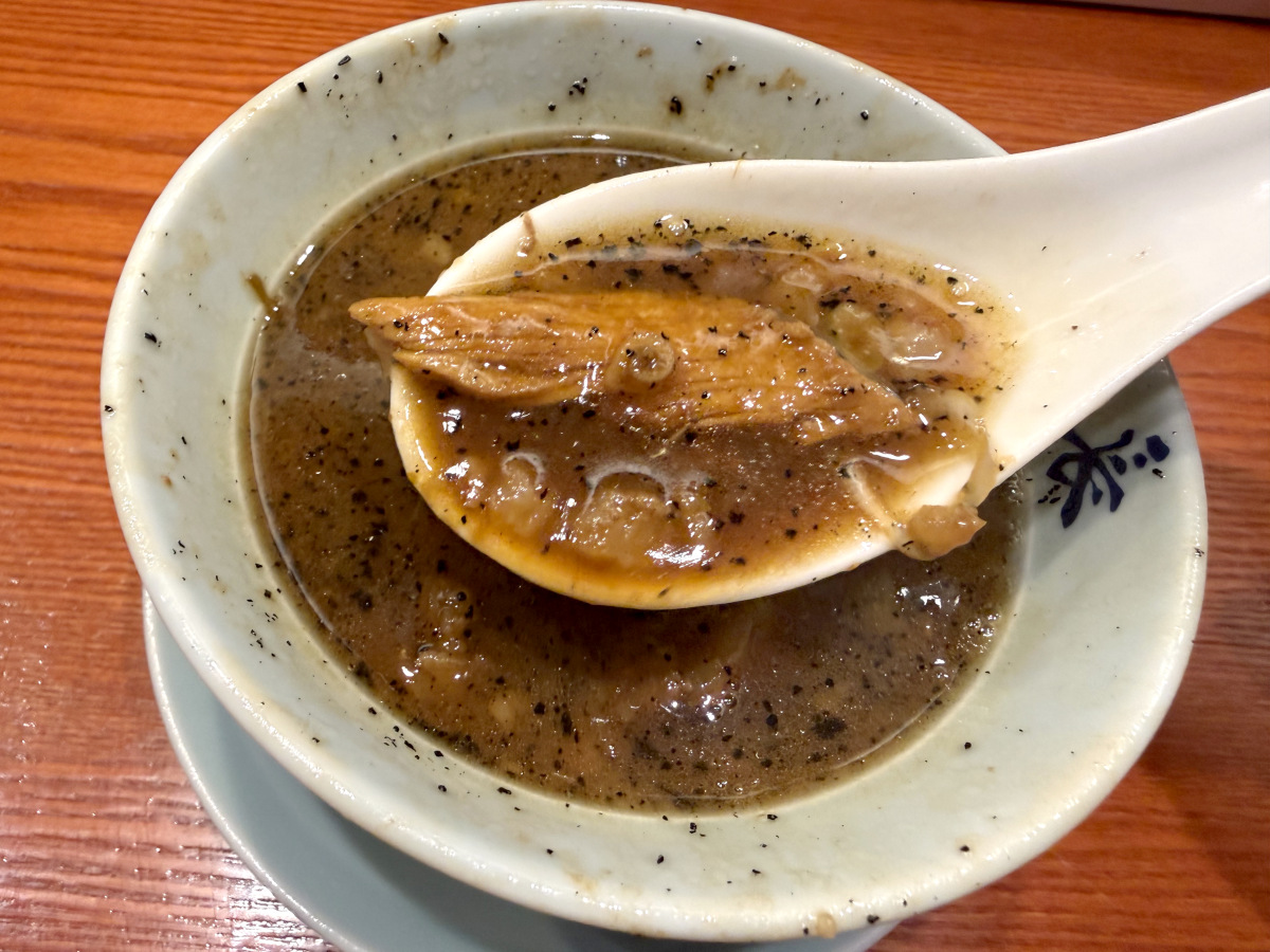 肝心のお味はというと、当然ながら「丸長中華そば店」に近い。甘酸っぱさとほど良い辛味に加え、パンチ力のある節の旨味が広がるどこか懐かしい一杯だ。