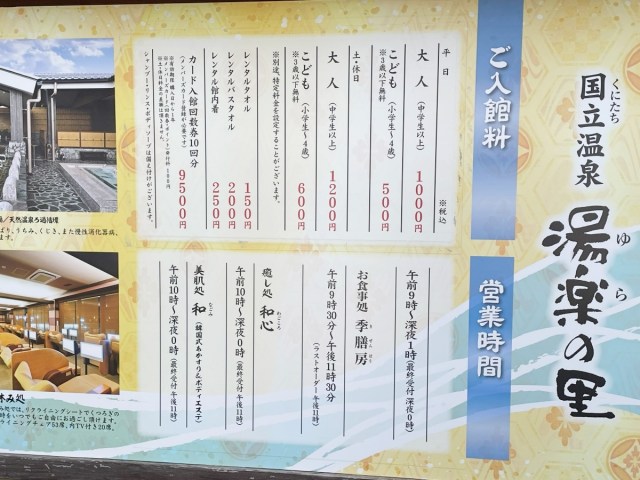 以前の記事で「昭島温泉」は紹介済みのため、今回はもう一つの店舗である「国立(くにたち)温泉」へと足を運んでみることにした。