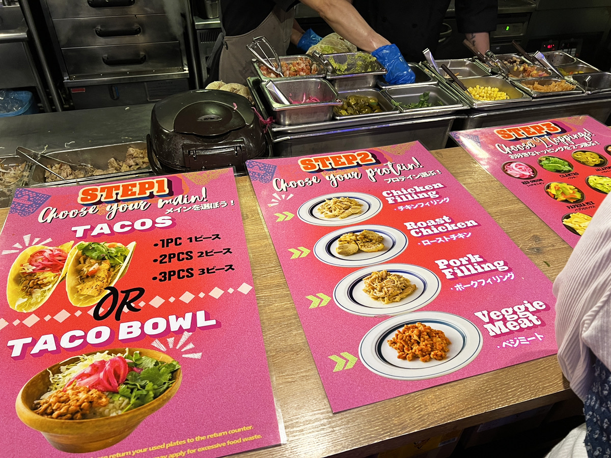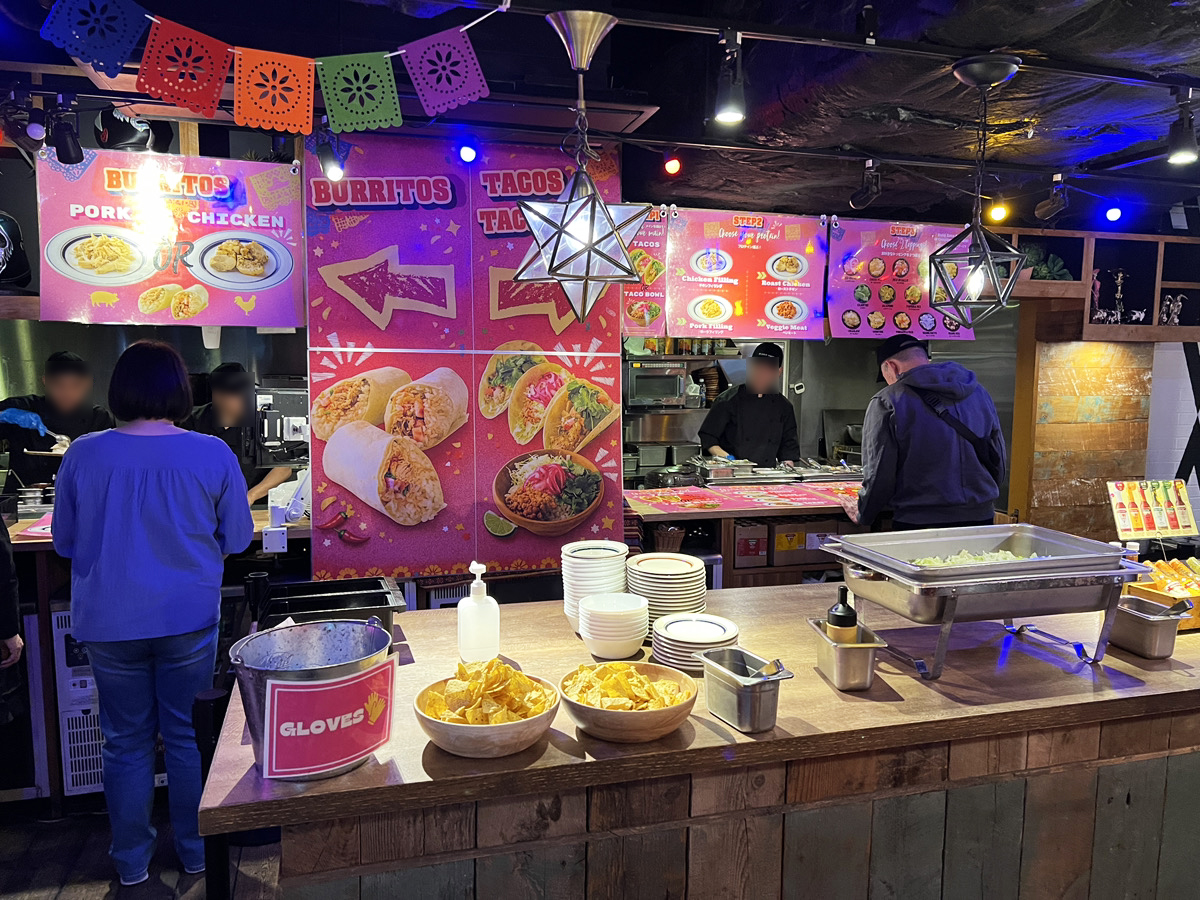 ポテトやサラダなどのサイドメニューはビュッフェコーナー、タコスは注文カウンターで注文するのは変わらずなんだけど……