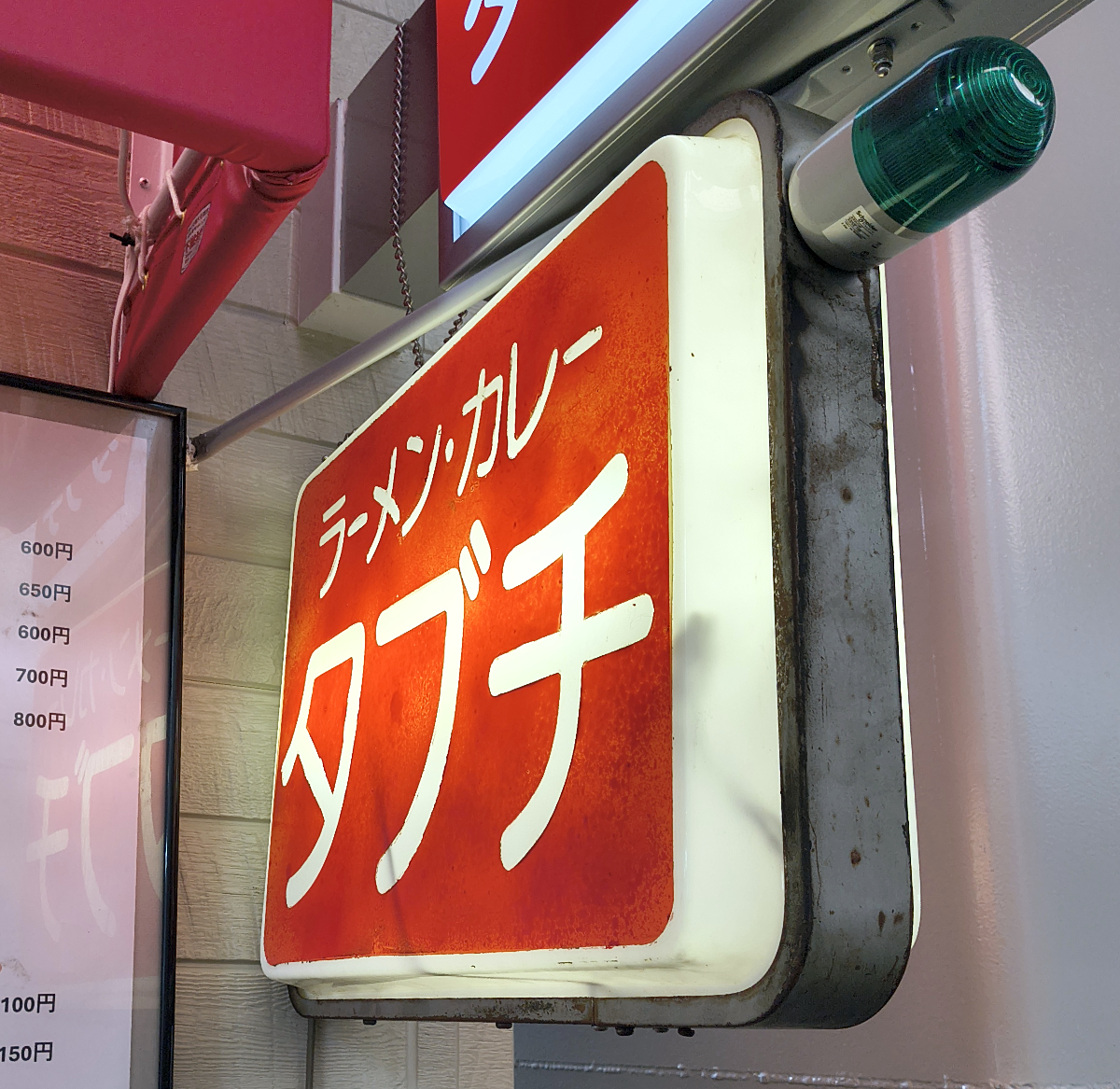 来ました、新タブチ! 新しいけど看板の雰囲気はそのままだ。同じ書体を使ったのかな? もしそうなら嬉しい。