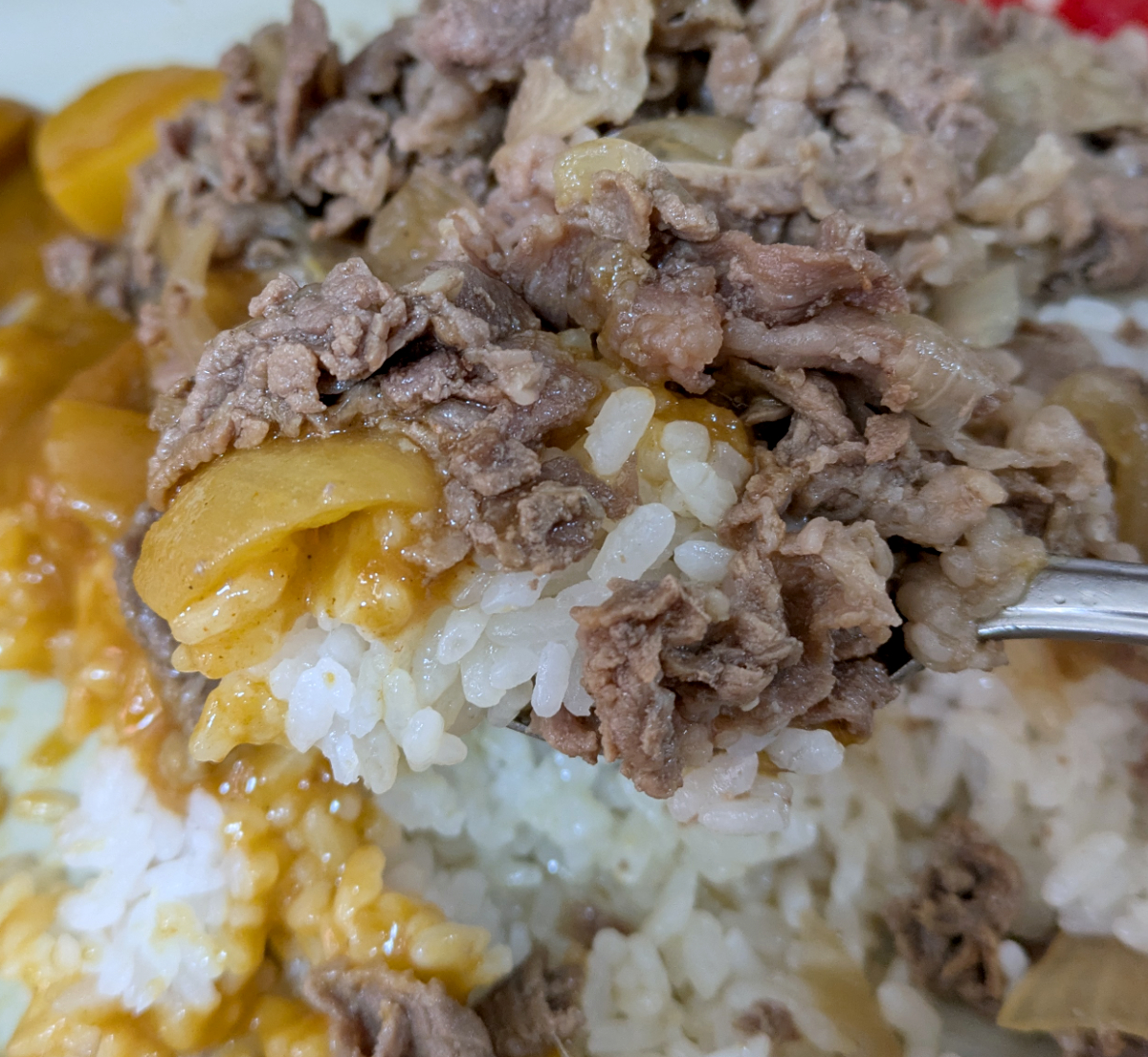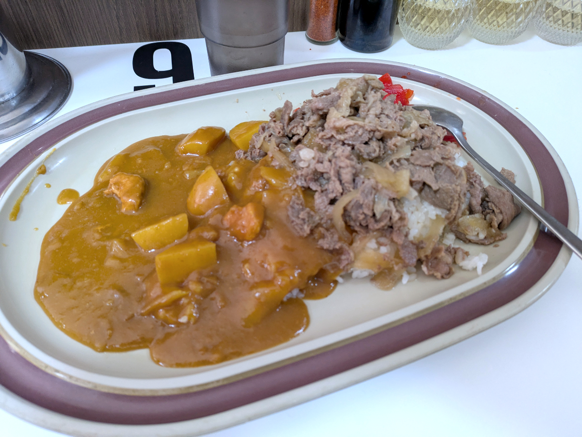そんなわけで、私はいつもの牛丼とカレーのダブル盛り合わせ。いつものが1番馴染むよね。器もそのまま、調度品や備品は真新しいけど、私の視界に映るものはいつも通り。