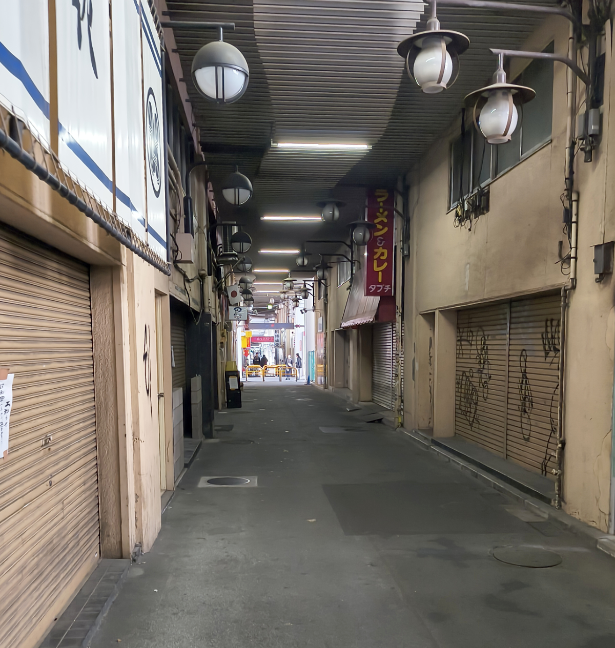シャッターが降りているところを初めて見た。このシャッターはもう上がることはないのだろう。
