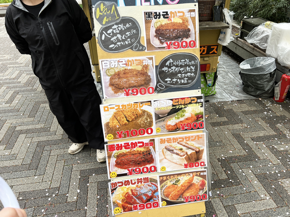 ゆえに、私(中澤)はマニアとは言わないまでも、キッチンカーを見てる方ではあると思うんだけど、立ち止まった理由はまず価格。渋谷でみそかつ弁当が税込900円は安めだ。