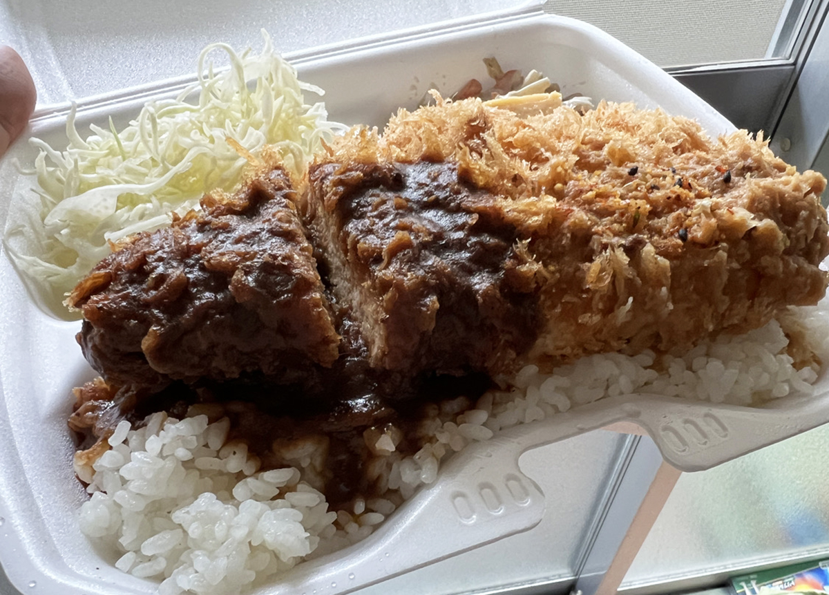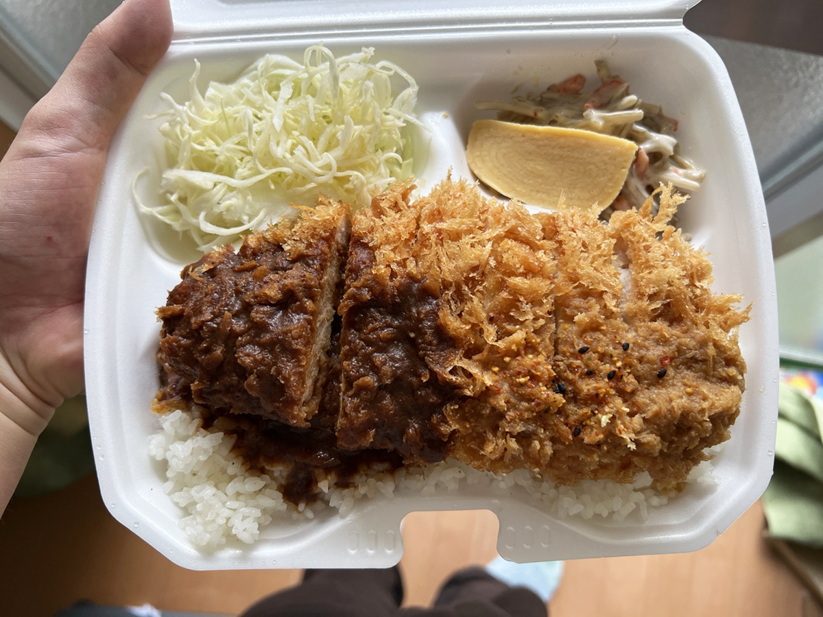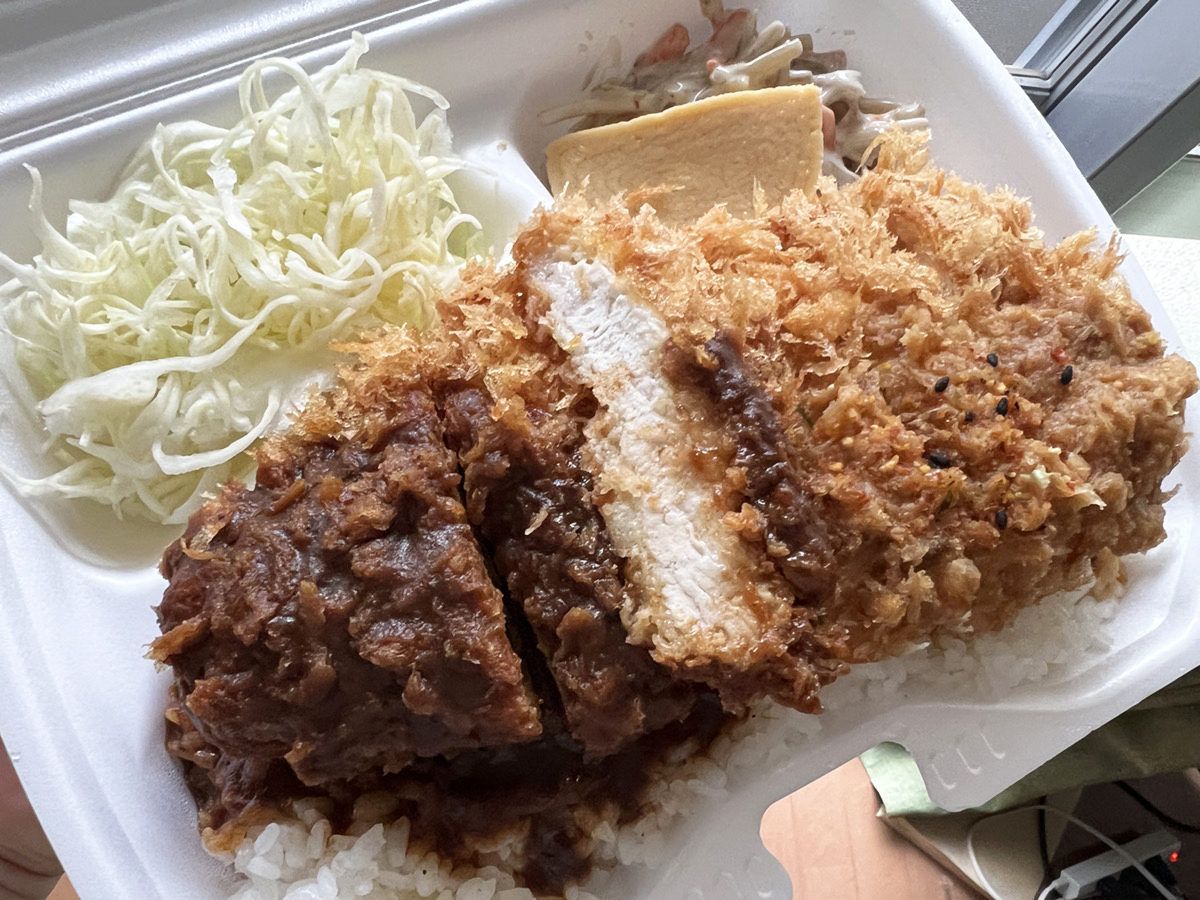 大きめのフードパックにしっかりした厚みのあるとんかつが乗っていて食べごたえあり。白みそのみそかつはさっぱりした味でどちらかと言うとおろし醤油みたいな軽やかさがある。信州味噌を使いかつお出汁と生姜を利かせてるんだとか。