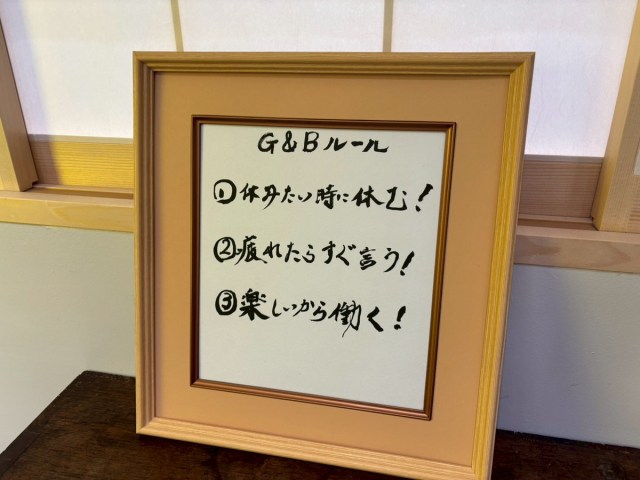 お店のルールも記載されており、「疲れたらすぐ言う!」とか、なんかいいなぁ。