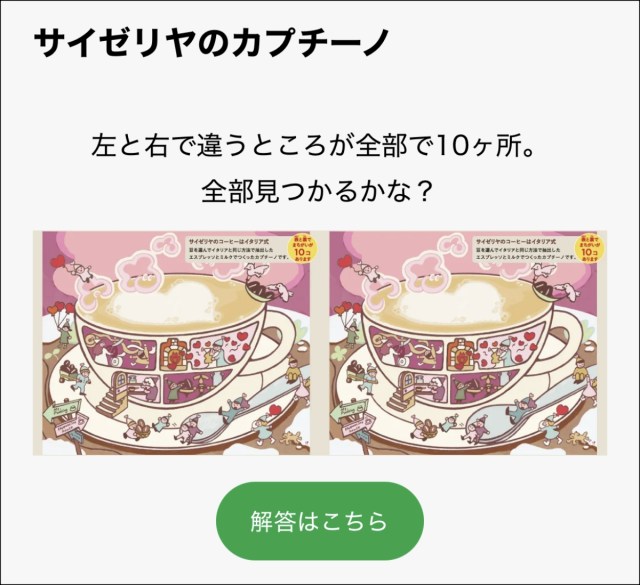 参考リンク:サイゼリヤ「間違い探し」