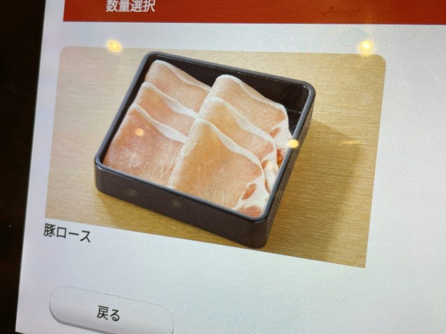 ふと注文用のタッチパネルを見ると、「豚肩ロース」の横に「豚ロース」というメニューがあるではないか。ロースが2種類あるだと……?