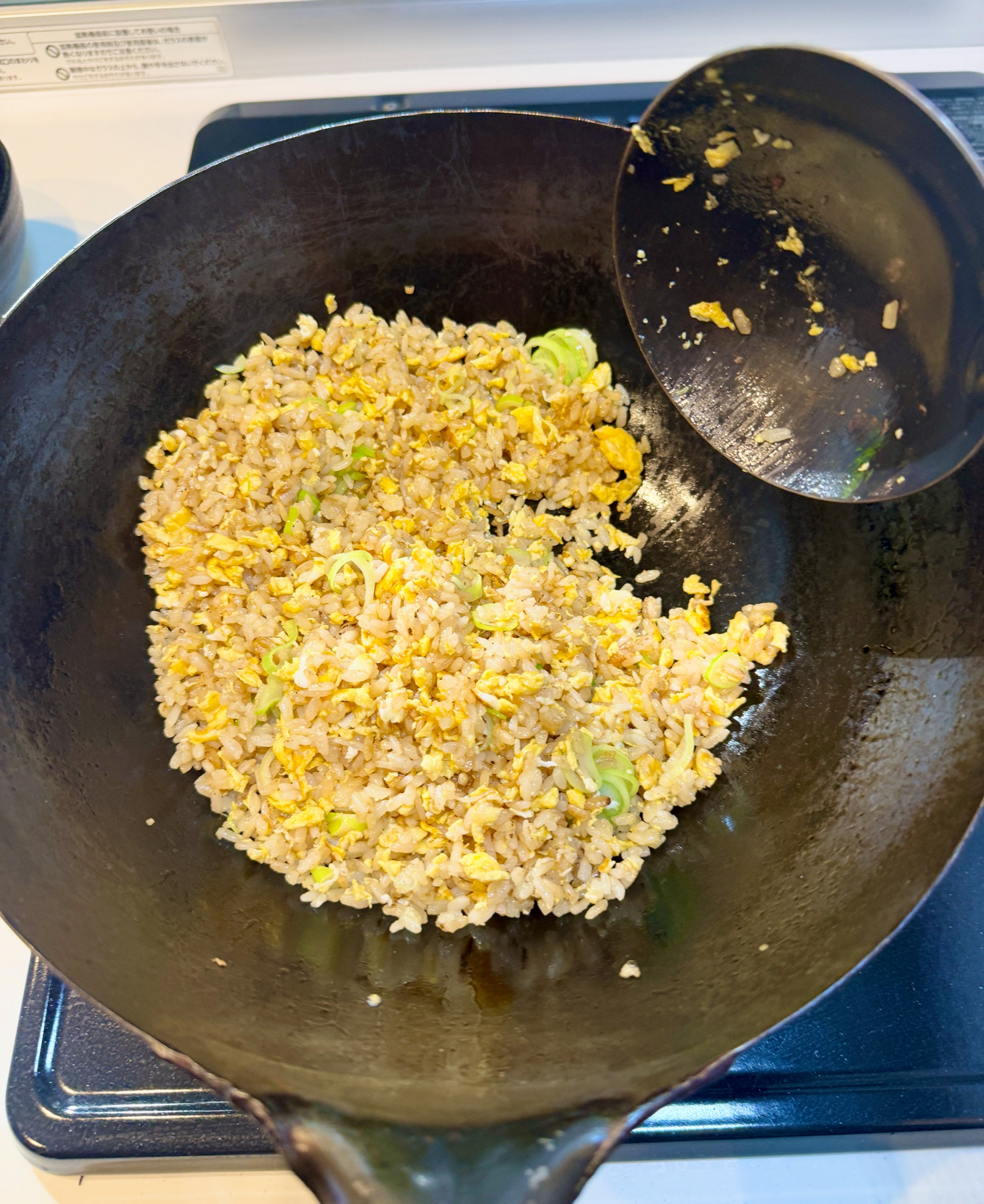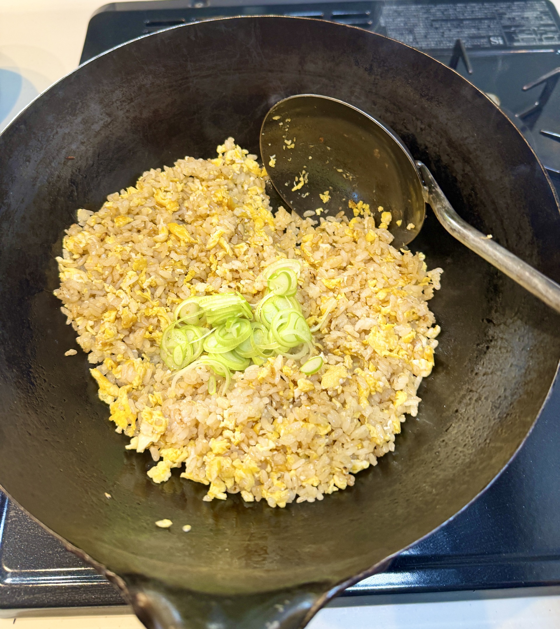 一方、地味ながら確実に仕事をしているのが最後に入れたネギである。由美のチャーハンは、「ネギを最後」にするのが多いが、今回もまた同じ。