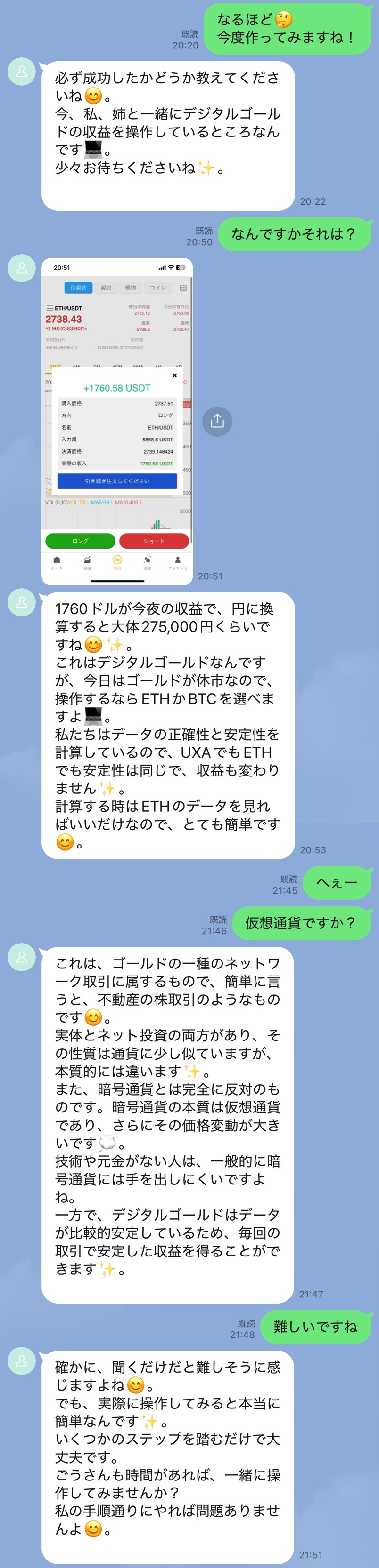 ※当然ながら投資話は完全スルーであるし、投資の話が来たら、それは詐欺だと思った方が良い。