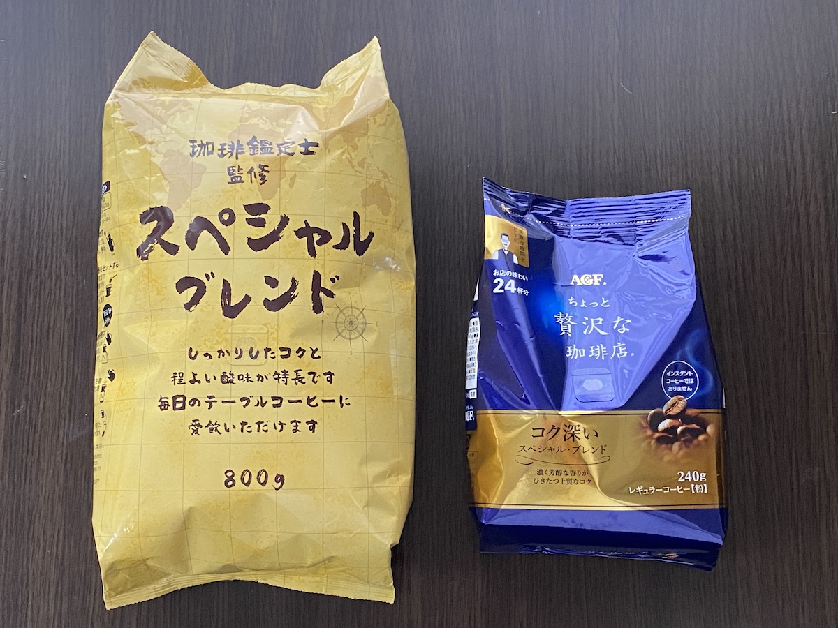 ちなみにいつも飲んでいる「AGF ちょっと贅沢な珈琲店」は同じ店舗だと862円(240g)。ロピアの安さにビビると同時に、オリジナルの凄まじいコスパがよく分かる。実際に1g単位で計算してみたところ……