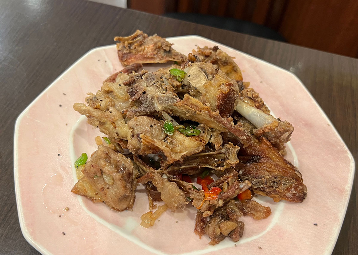 出てきた骨の塩コショウ炒めもまた美味しく、ビールに合いまくる……が! さすがに全ては食べ切れなくてギブアップ。