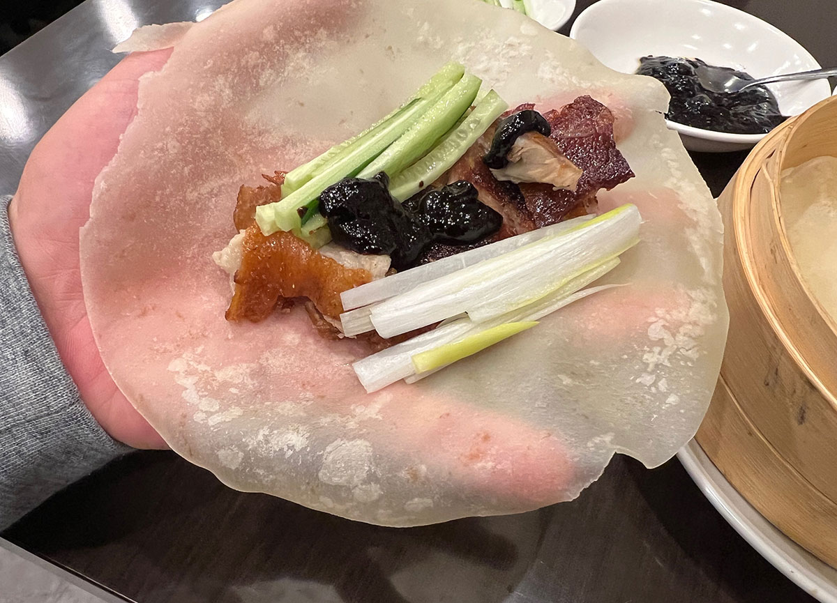 北京ダックとはいってもほぼ皮なんだから大丈夫だろ……と思ったら、その認識が甘すぎた。北京ダックの皮の表面にまぶされている砂糖より甘かった。
