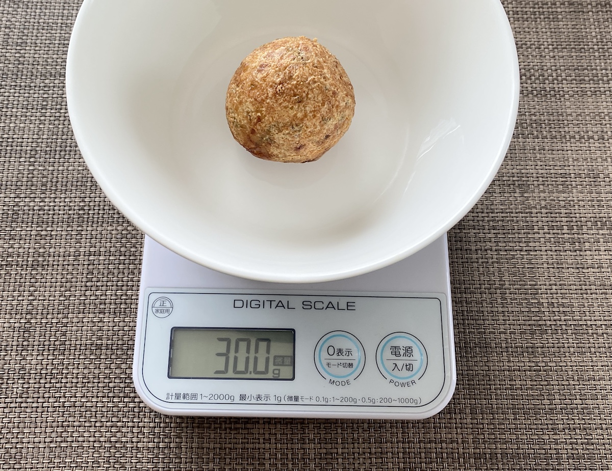 まずもって気になるのは、やはり重量だろう。スーパーなどで売ってる冷凍たこ焼きの一般的なサイズは20gで、ここをベースに比較したのだが……