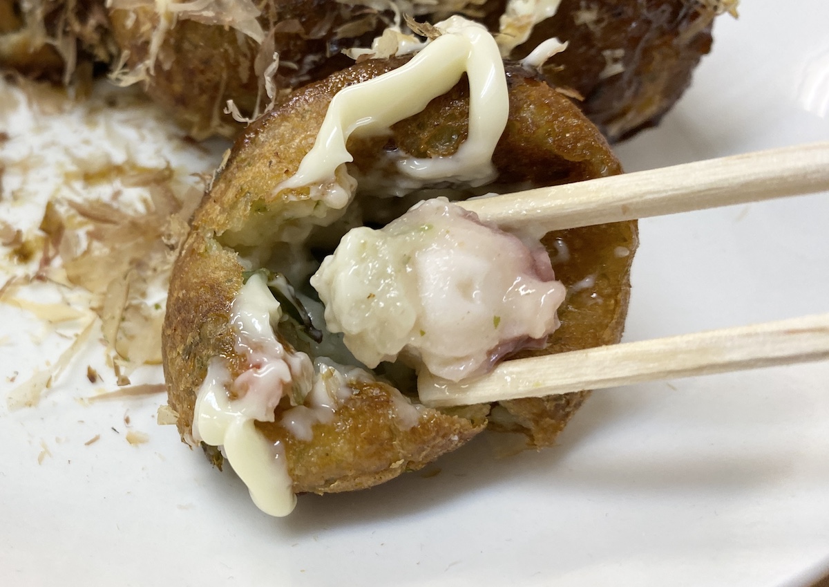 また、生地にカツオベースの出汁を使用している影響だろう。魚介の味が口の中に広がっていくのも印象に残り、たこ焼きとしてのレベルも高いように感じた。