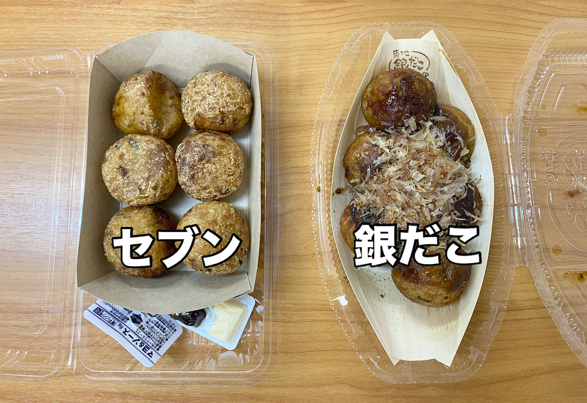 「鰹節の違いくらいしか感じない」「普通にどっちも美味しい」「ソースやマヨがついたら似た味になるからハッキリ分からない」との意見で、最終的には銀だこ2票、セブン1票という結果に。