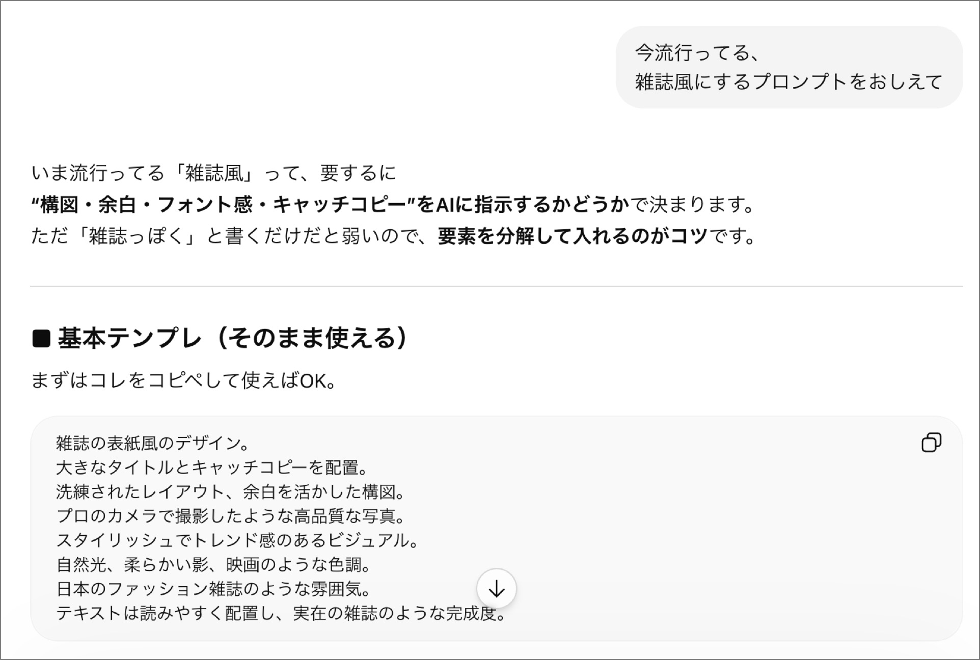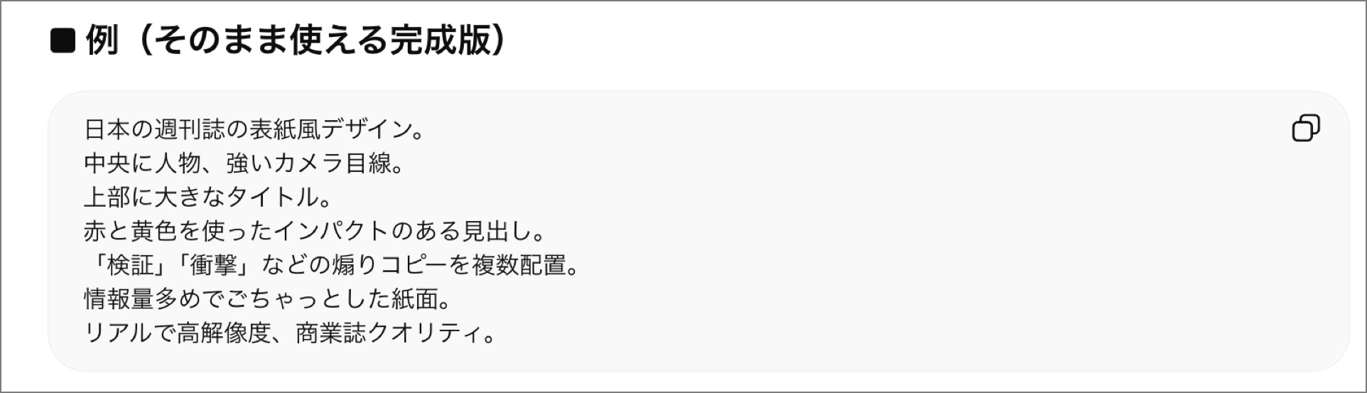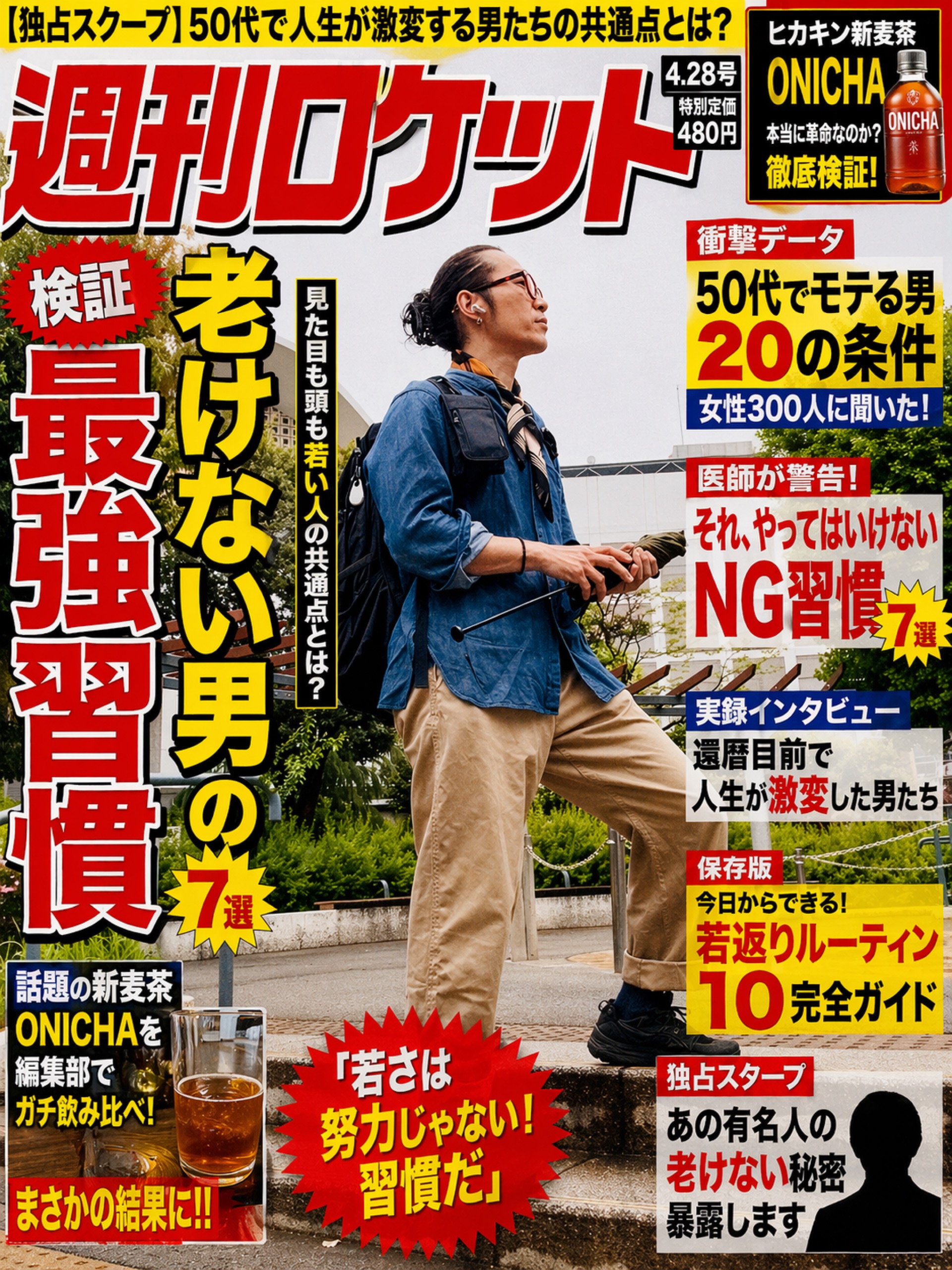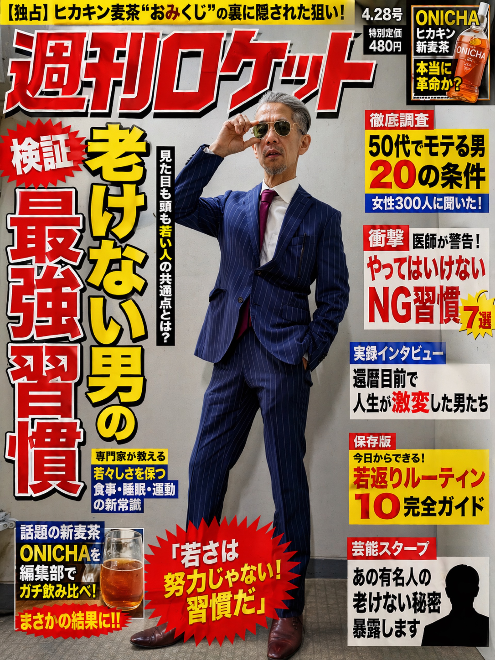 ちなみに、上記プロンプトの「日本の週刊誌の表紙風デザイン」を「日本のファッション誌」「海外のファッション誌」「映画雑誌」「サブカル誌」「ゲーム雑誌」「パチンコ雑誌」「プロレス雑誌」などに置き換えつつ、少し指示を調整して試しても、非常に面白い出来になった。