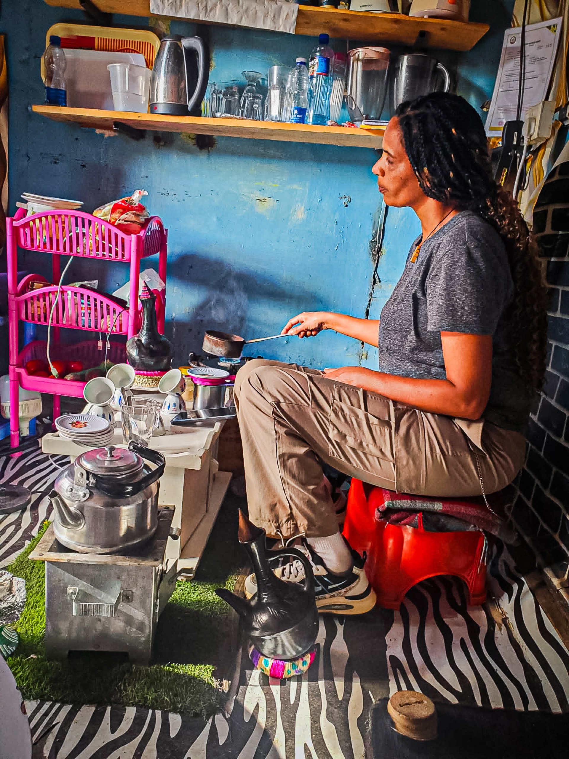 というプロンプトを出してくれたので、それをそっくりそのまま使い、チャオスがケニアのナイロビで撮影した「オシャレな喫茶店の画像」と共にチャッピーに投げ込んでみた。