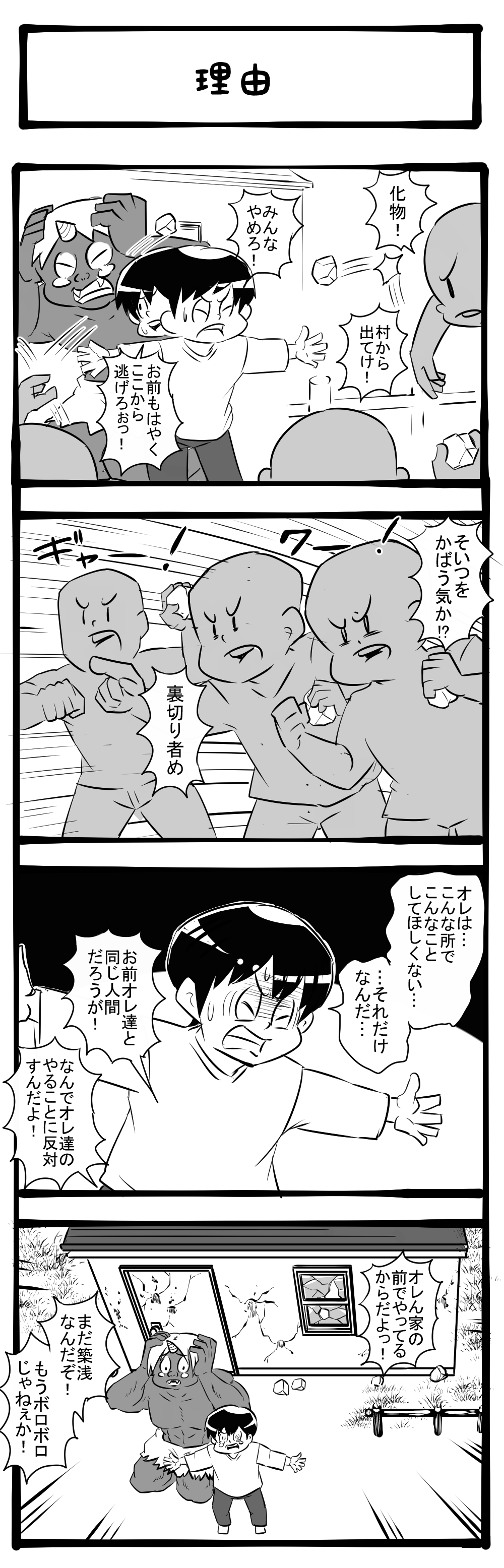 よそでやれ! 村民からいじめられてる怪物! 四コマサボタージュBYD第350回「理由」