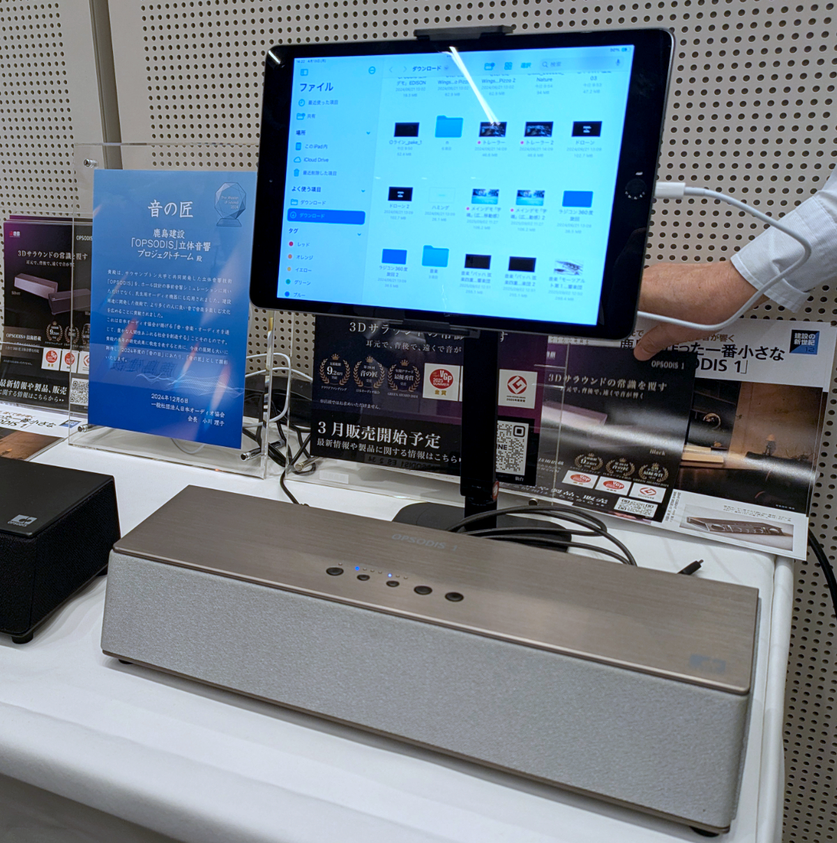 今回のイベントでとくに私(佐藤)がおすすめしたいのは、「鹿島建設」の立体音響スピーカーだ。タッチアンドトライでその音を聞かせて頂いたら、度肝を抜かれてしまった! 前から横から上から後ろから、あらゆる方向から音がする! どうなってんの!? ぜひその音を体験してほしい。ビックリしちゃうぞ!