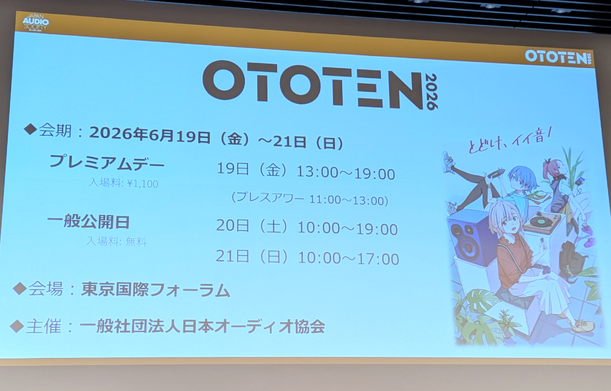 2026年6月19~21日の3日間の日程で、国内最大級のオーディオとホームシアターの祭典「OTOTEN2026」が東京・有楽町の東京国際フォーラムで開催される。それに先立つ4月13日、記者発表会が行われた。