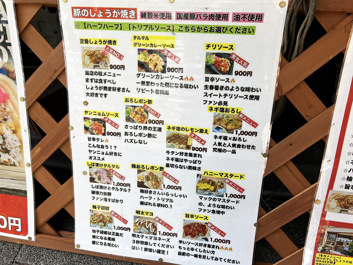 では、はまちゃんはいかにしてしょうが焼きを13種類も錬成しているのか? 答えはメニュー看板に書いてある。そう……