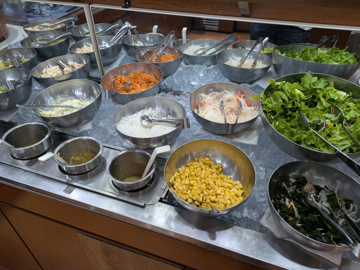 さて、まずはサラダバーにいって前菜を調達することから始まるのだが、ここからピザが登場するまで少し長くなることを断っておこう。というのは、サラダバーの充実度がすごかったからだ。