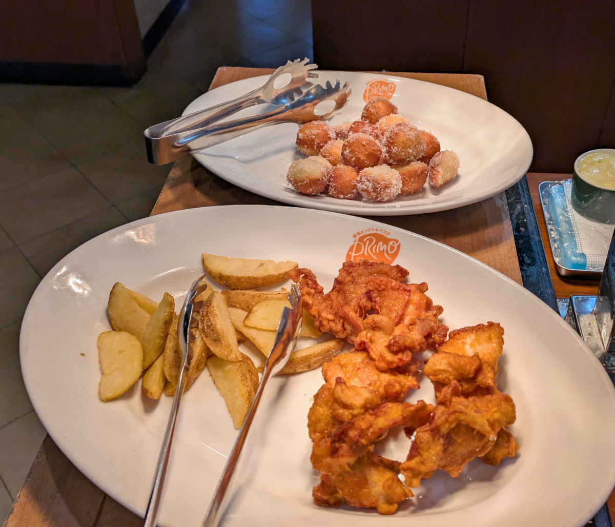 そして「から揚げ」と「フライドポテト」、それから向こうには「小さいドーナツ」もある。
