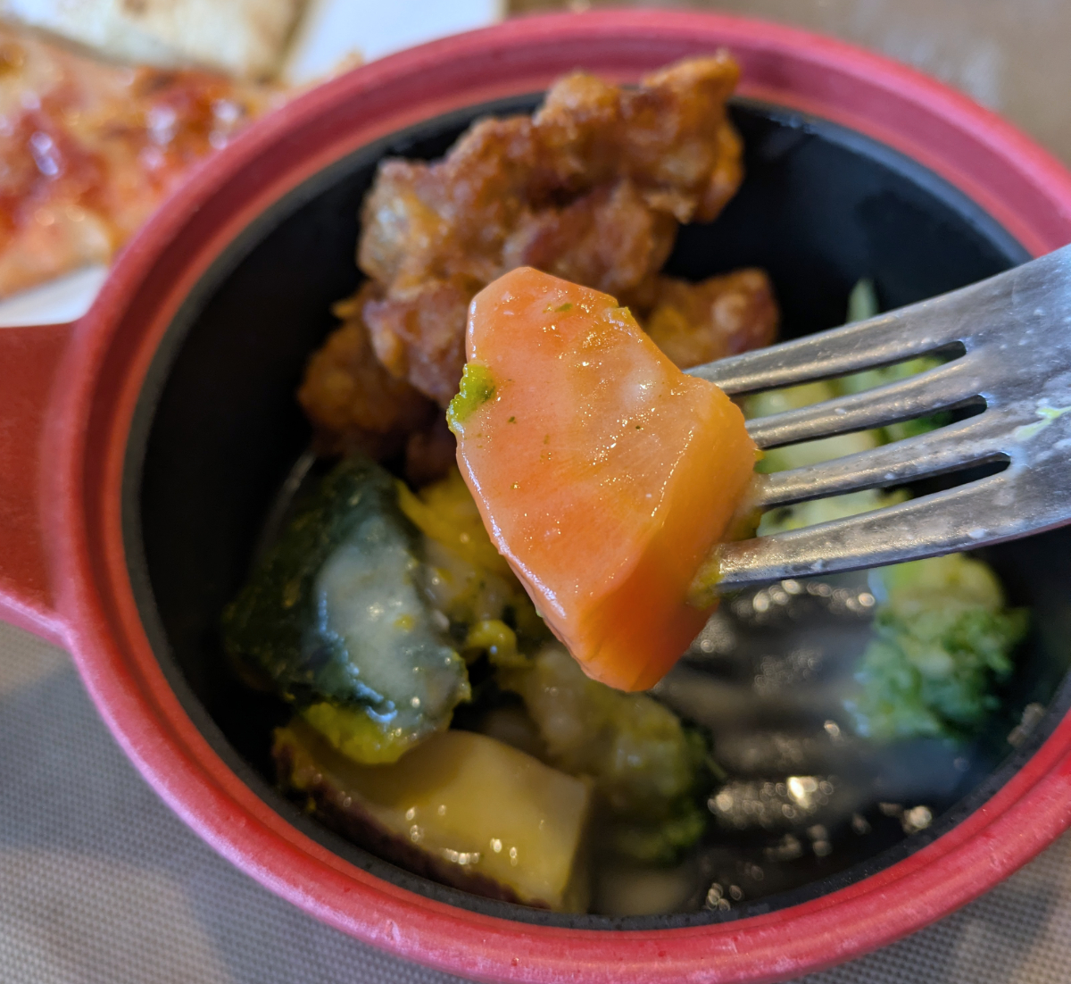 とにかくサラダを食べよう。アンチョビソースで食べる温野菜は美味いんだよね。たかがレンチンといえども、これをサラダバーに置いてくれているところに、センスを感じる。