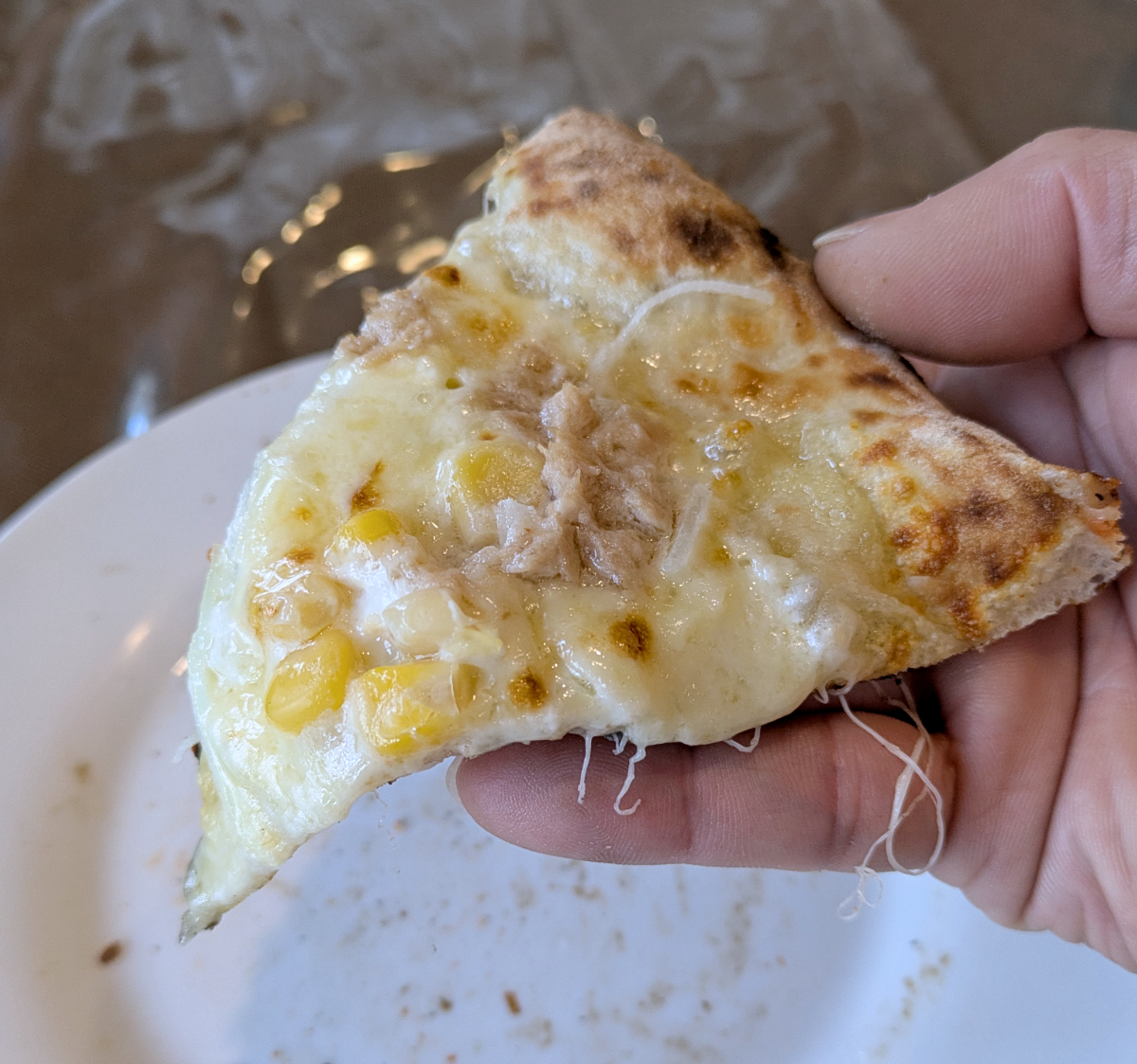 そして最後に「ツナマヨコーン」を頂いてピザのおかわりを終了した。その気になればもう少し食べられたかも。パスタも悪くなかったけど、ピザがここまで美味いとわかっていたら、パスタなしでピザに専念してもよかった。
