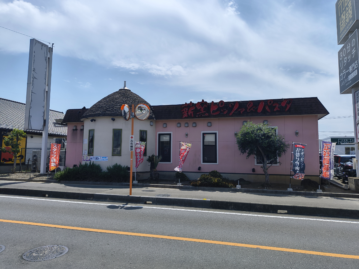 そうしてお店まで来ましたよ。「薪窯ピッツァ & パスタ」とあるあの建物だな、「ナポリピッツァおかわり自由」の幟(のぼり)もあるから間違いない。