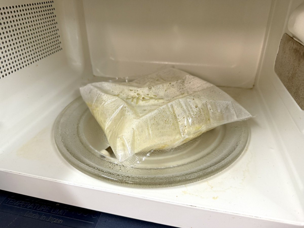 500Wの電子レンジで6分加熱。