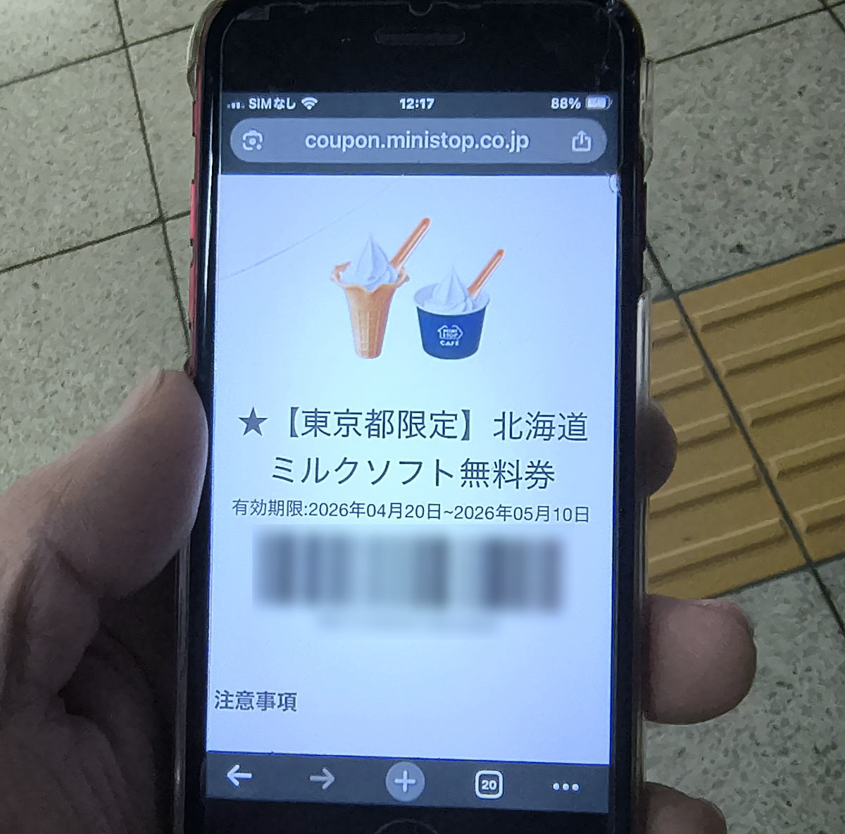 レジでクーポンを提示して、ちゃんとソフトクリームを手にできました。