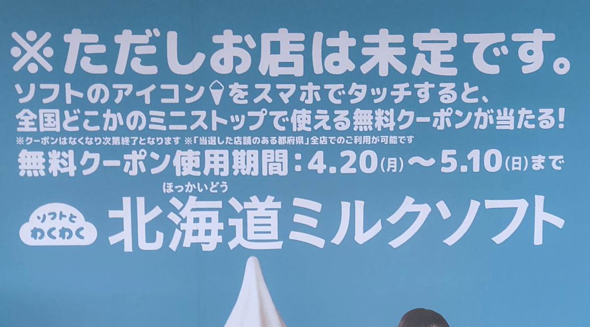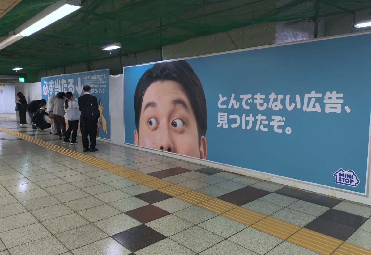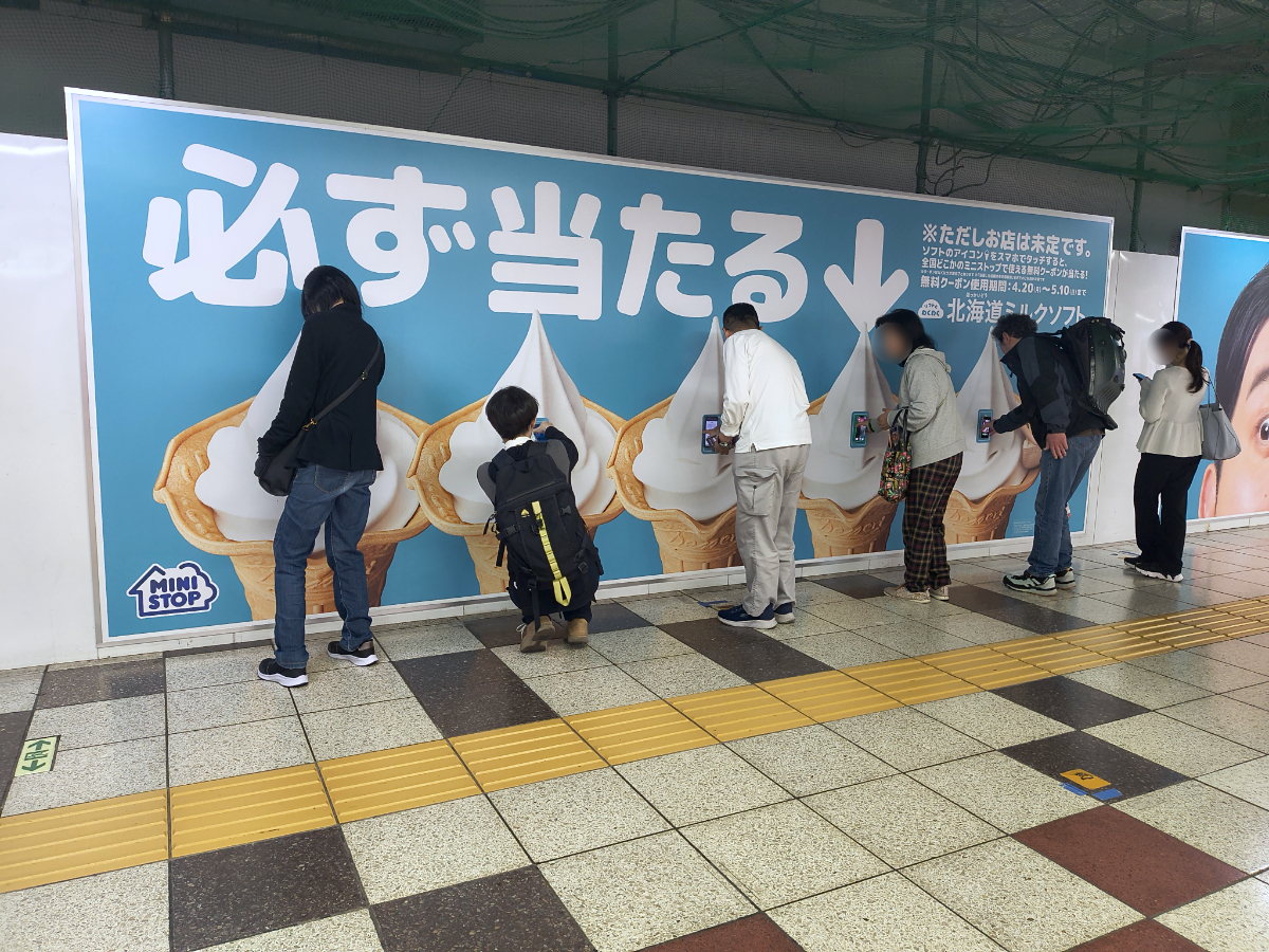 先行きが不安ではあるのだが、そのミニストップが面白い広告を展開している。東京メトロ新宿駅のメトロプロムナード内に「北海道ミルクソフト」が必ず当たる交通広告を掲出しているのだ。