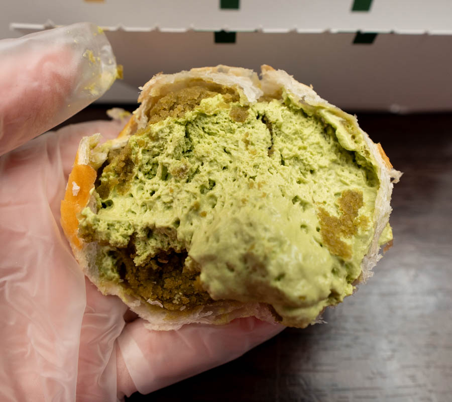 そして抹茶あんと抹茶クリームだ。まず抹茶あんが、ちゃんと苦みを持っている。そして濃い。ただ甘いだけのスイーツ抹茶ではない。