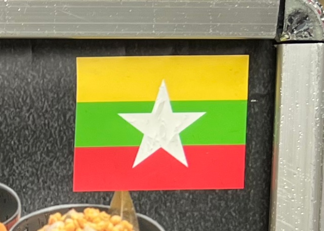 ▼この国旗にまったく見覚えがないなと思ったら、ミャンマーでは2010年に軍事政権化で国旗が変更されたとのこと。ミャンマー国旗って、赤地に青のイメージだったから全く分からなかったよ……。私同様、新しい国旗を知らなかった人は覚えておこう
