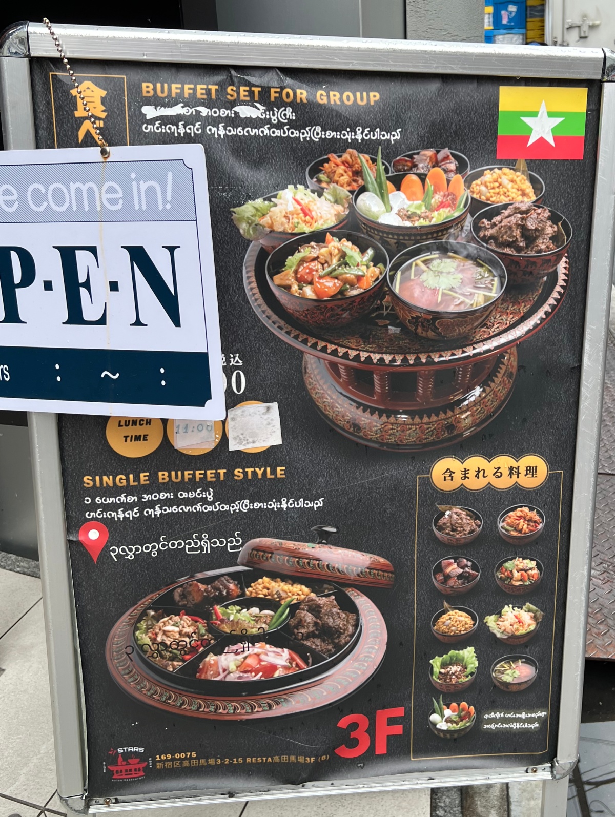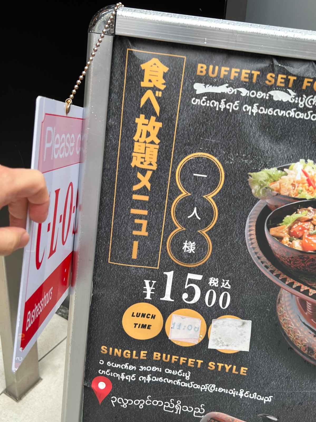 ちなみに、「OPEN」の部分をめくると、日本語で「食べ放題 1人様 税込1500円」と記載がある。