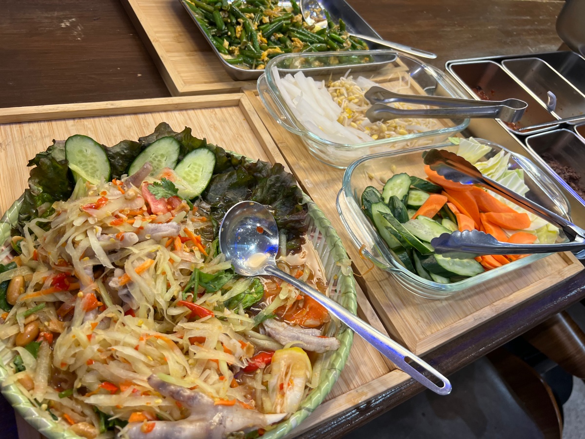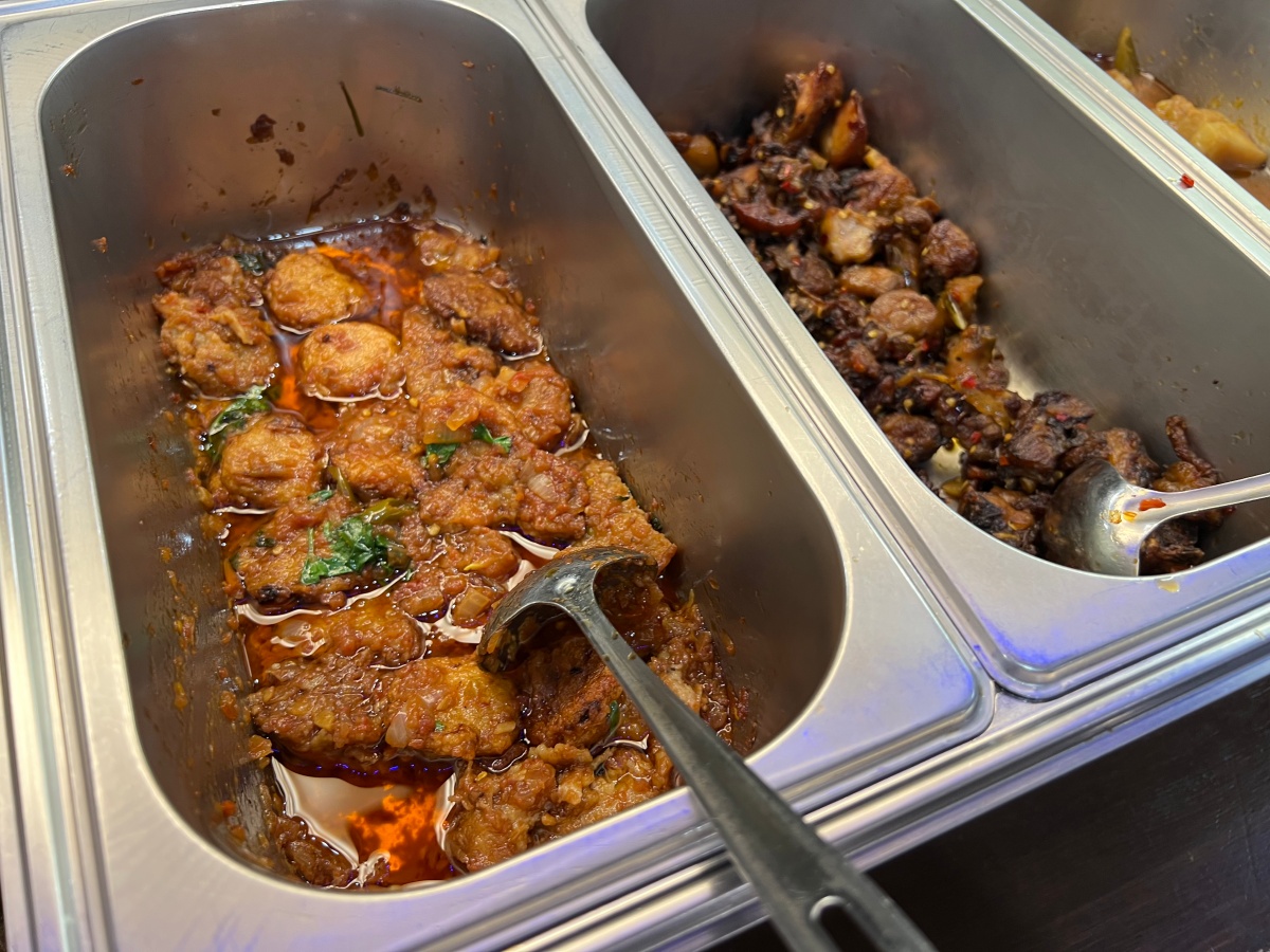 ▼ビュッフェの一部。日本語の説明はないから、見た目だけで選ぼう! そういうのもまた楽しい