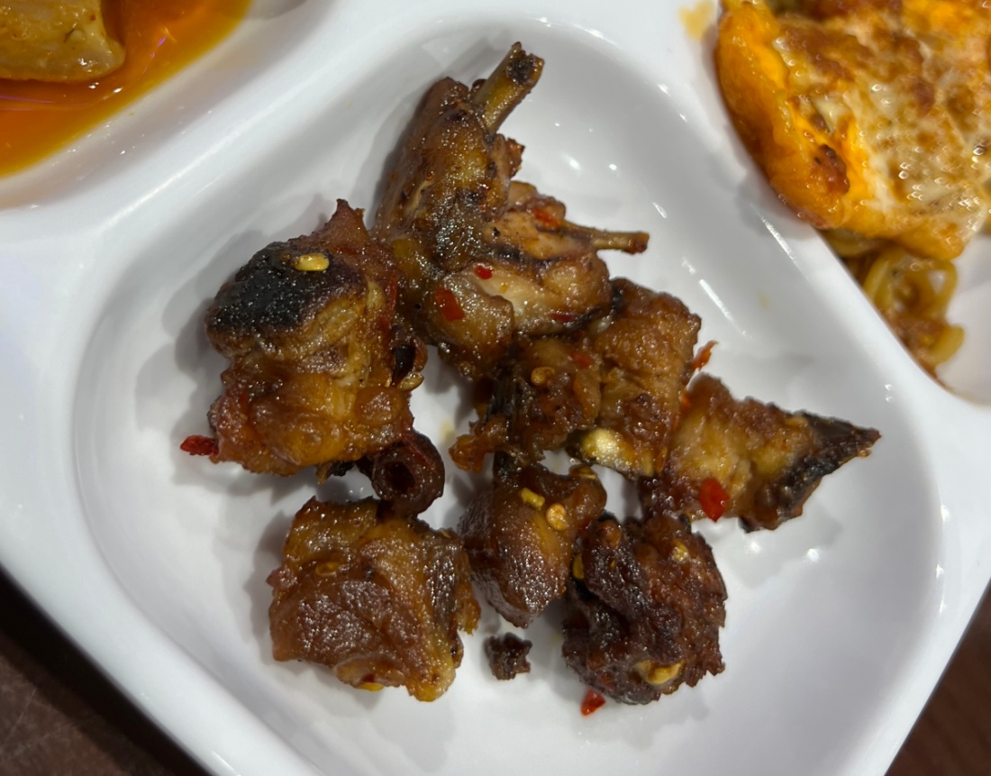 これも何だろう? 鶏肉っぽいけど、鶏肉の割には小さいような。