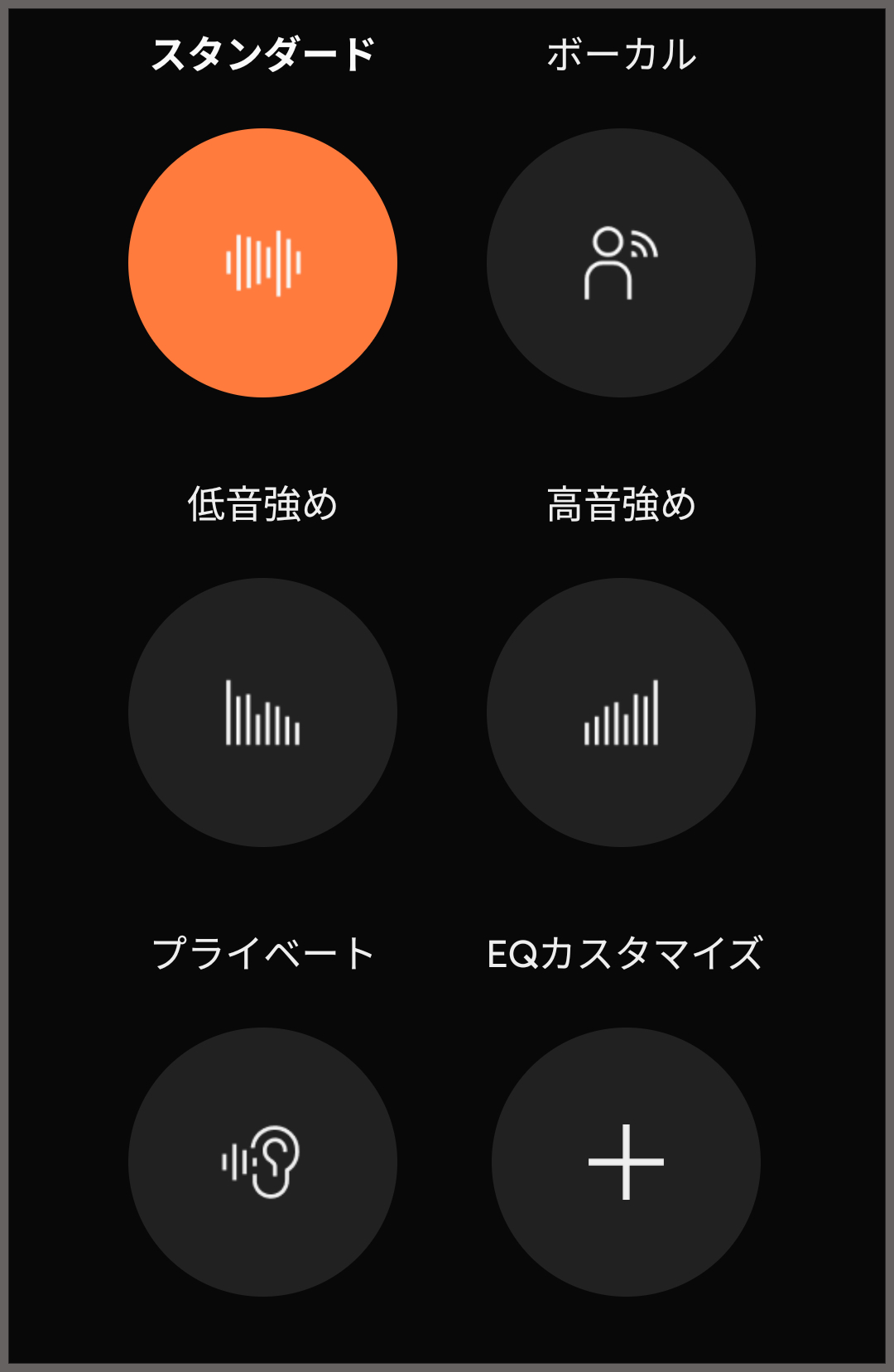 サウンドモードは6種用意されており、「プライベート」は他のモードよりも音漏れのしにくい設計になっている。