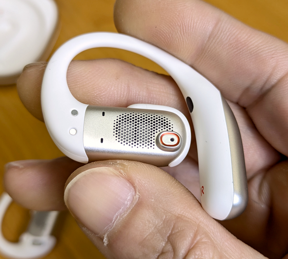 装着は耳に引っ掛けるだけ。普段からカナル式イヤホンを耳に突っ込んでいる私にしてみれば、不安だ。かなり不安、イヤホンを付けている心地がしない。だが、耳にかかる負担はイヤホンを突っ込むよりもはるかに軽い。これで本当に音楽が聞こえてくるのか? と疑いたくなるほどだ。